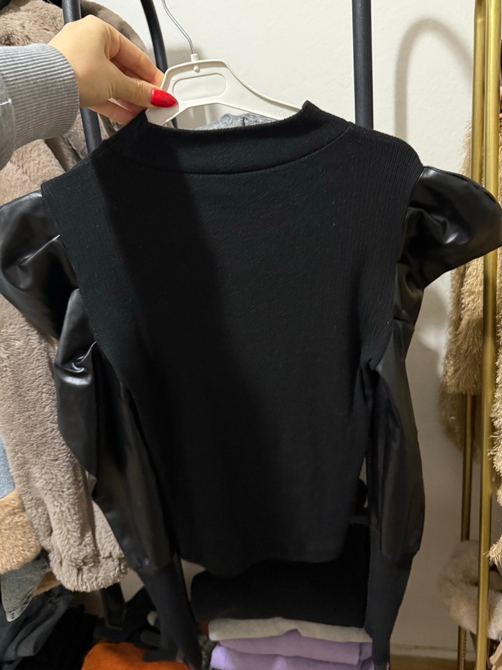 Deri Kollu Siyah Balıkçı Yaka Bluz