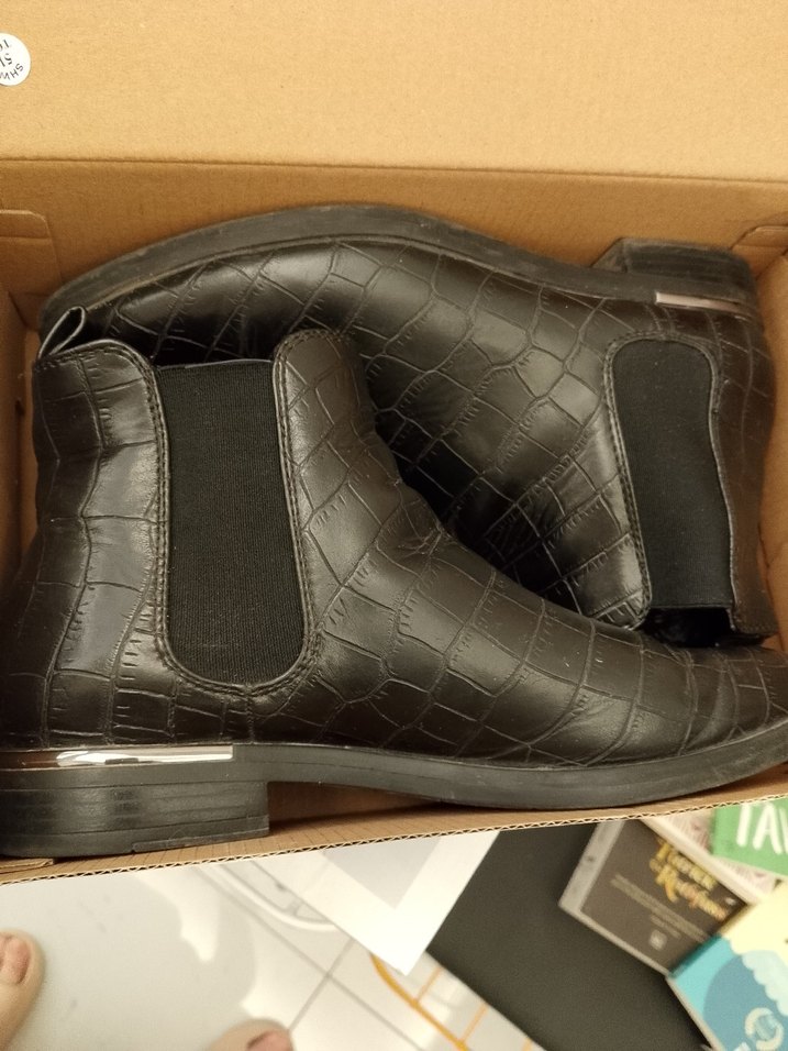 siyah deri kroko desenli, topuklu ve tokalı kadın botu, günlük sokak stili için uygundur.