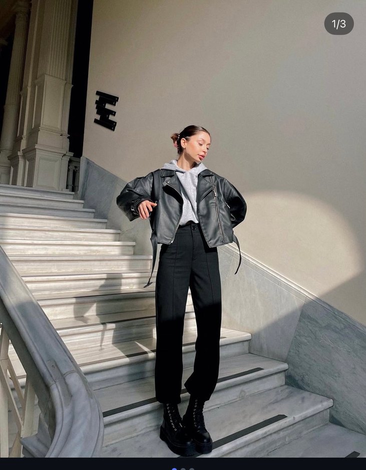 Siyah deri kumaştan yapılmış, kemerli ve normal kesim midi uzunlukta kadın ceket. Ofis ve sokak stili için uygundur. Uzun kolludur ve desen içermez. Hiç bir deformesi yoktur