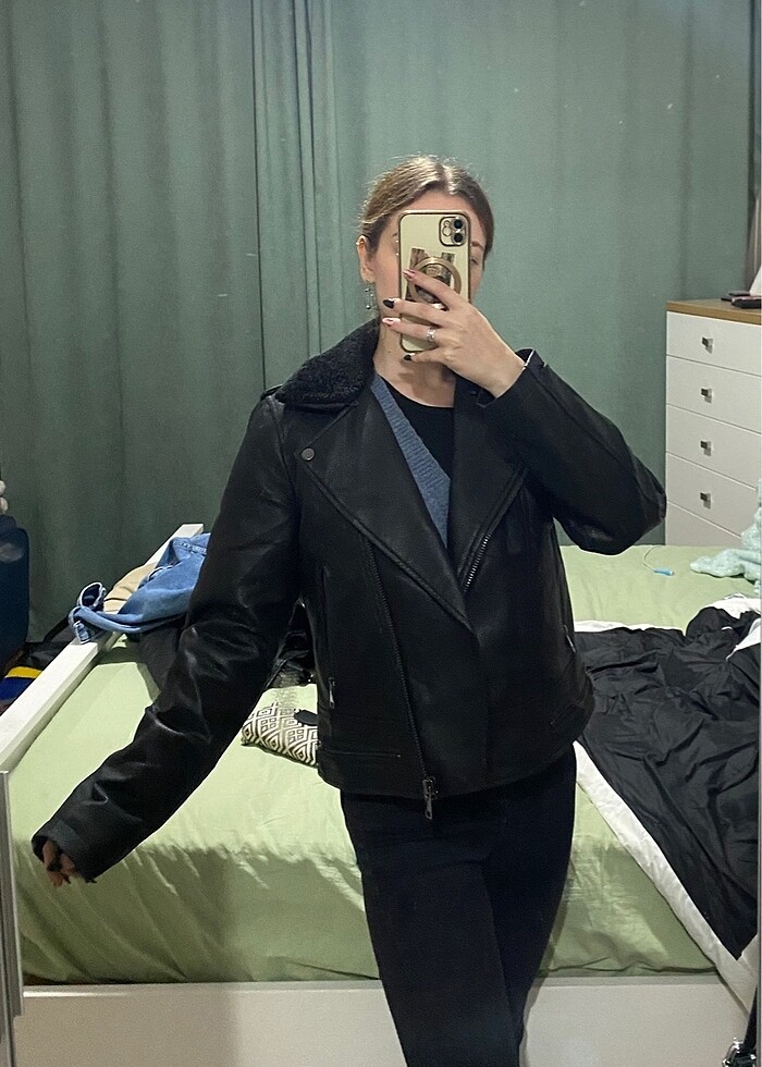 Az kullanıldı. Deformasyon yok. Sadece son fotoya da koydum askı yeri koptu. 34-36 beden uyumlu. Normal deri ceketlerden daha kalın mont tarzı. Yakasında ki kürk detayı çıkartılabiliyor. Teklifleri değerlendiririm.