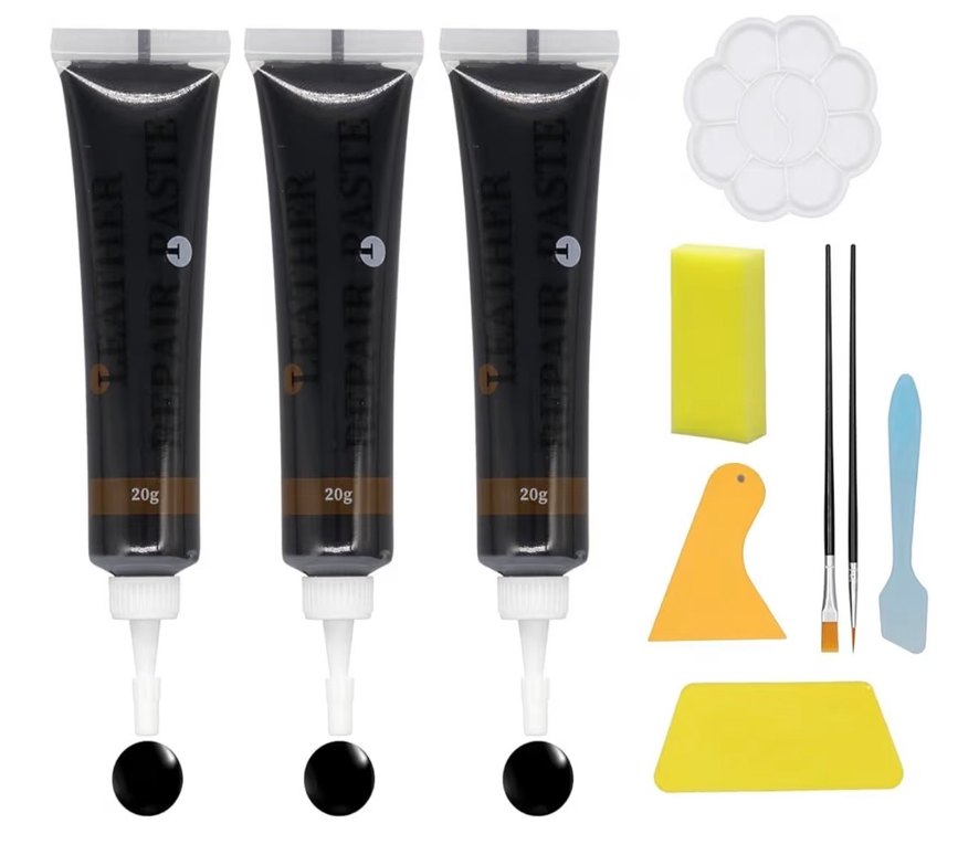 Deri Onarım Kiti. Sıfır kullanılmamış üründür. Yurtdışından getirilmiştir. Pakette 3 adet 20 gram deri macunu bulunmaktadır. Ayrıca ilk görseldeki diğer 7 parça ürün de dahildir. Kolay kullanım - Hızlı kuruma ve dayanıklılık - Su geçirmez