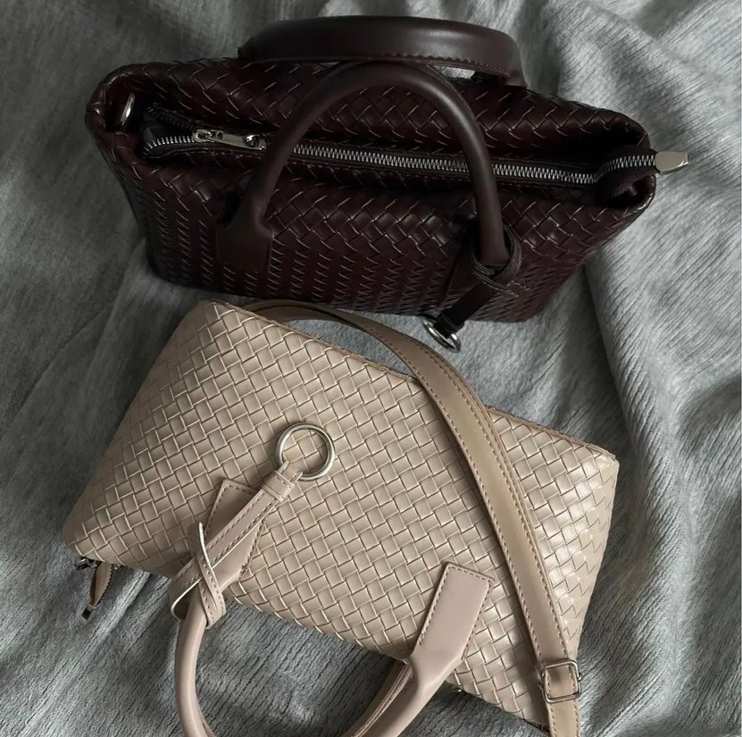 Örgü desenli deri kadın çanta, kemerli detaylıdır. Kahverengi ve gri renk seçenekleriyle, desen içermeyen şık bir görünüme sahiptir. Günlük kullanım için Paris tarzı, çağdaş ve rahat bir çanta.
