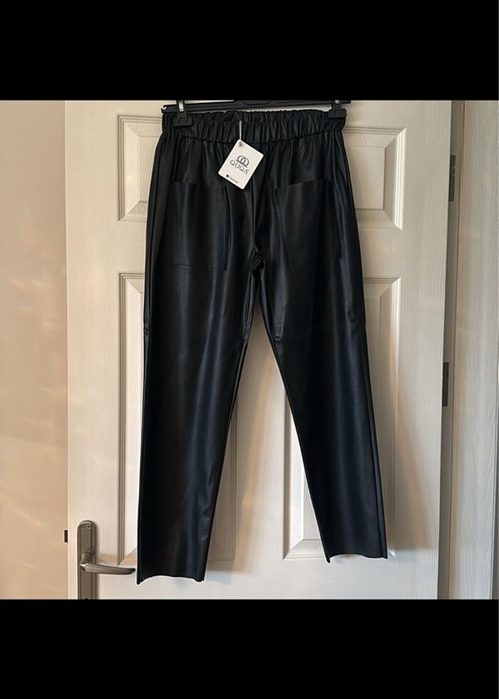 SUNİ DERİ HİÇ GİYİLMEDİ BELİ LASTİKLİ ÖNDE 2 CEBİ VAR PAÇASI DİKİŞSİZDİR