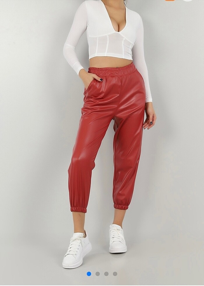 Gül kurusu Deri pantolon
