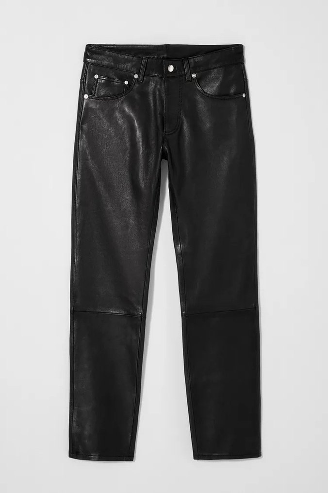 Parlak siyah deri biker kadın pantolon. (Teklif atınız yardımcı olacağım) Cepleri yoktur.