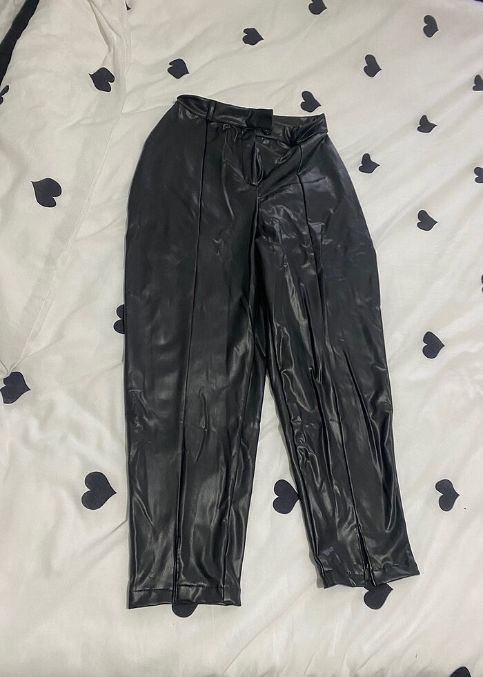 Paçası yırtmaçlı deri pantolon , l bedendir , hiç giyilmedi , esnek kumaş , içi Polarlı duvak tutar