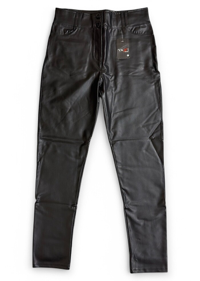 Yaxi Siyah Suni Deri Pantolon. Boy: 99 Cm. Paça: 14 Cm.
