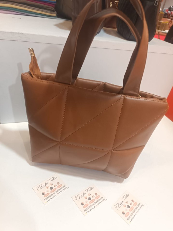 Parlak kahverengi deri kadın çanta, fermuarlı ve minimal desensiz tasarım. Trendy casual sokak stili için uygun.