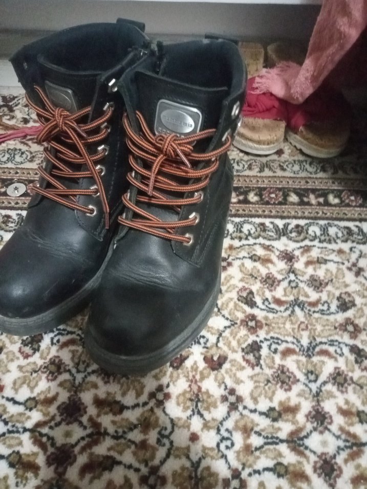 Deri siyah bağcıklı biker stiletto topuklu bot, günlük kullanıma uygun sağlam tarzda.