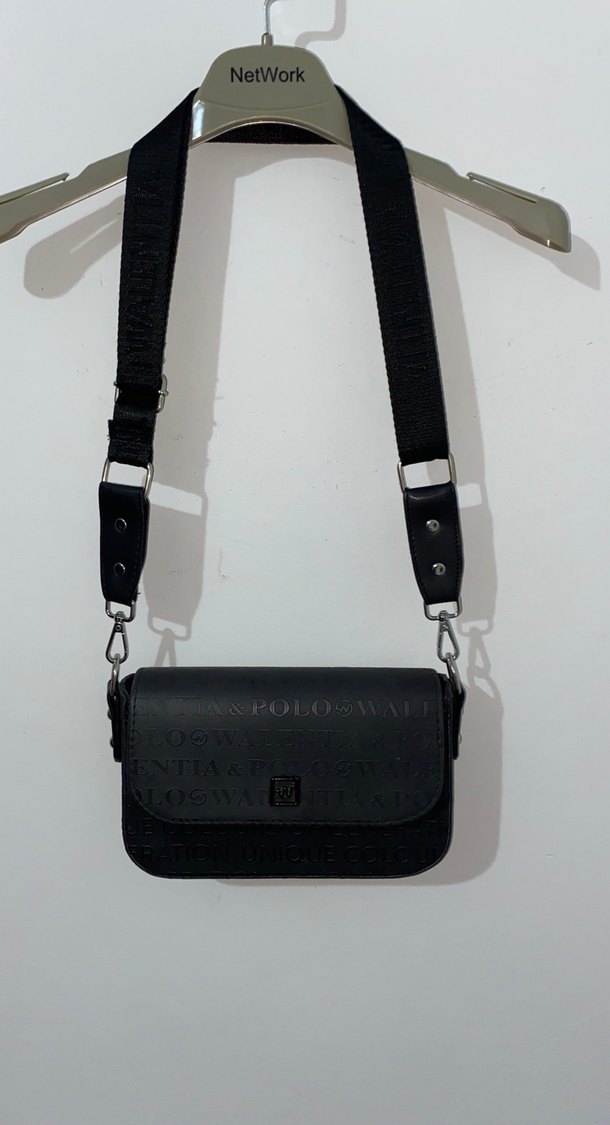 Hiçbir sorunu yoktur. Deri siyah renkli, baskılı ve kemerli kadın çantası. Geniş ayarlanabilir askısı ile günlük sokak stiline uygun.