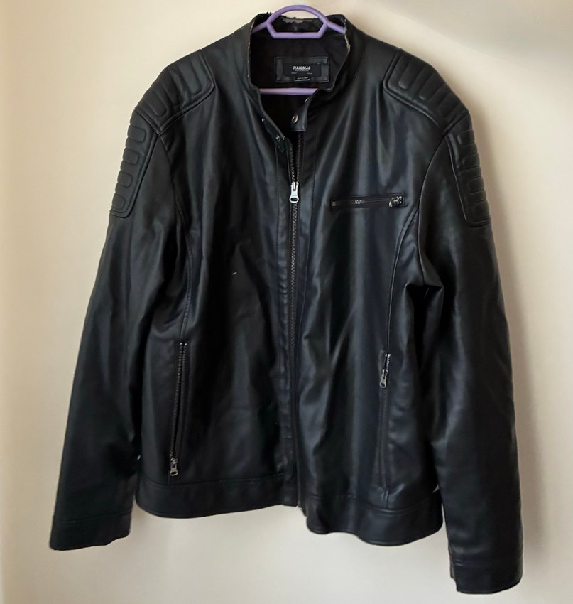 Fermuarlı cepleri ve kesik yakası olan siyah deri biker ceket. Uzun kollu, normal kesim ve günlük kullanıma uygun.Arka kısmında sökükler var her iki tarafta.yakasında da var.