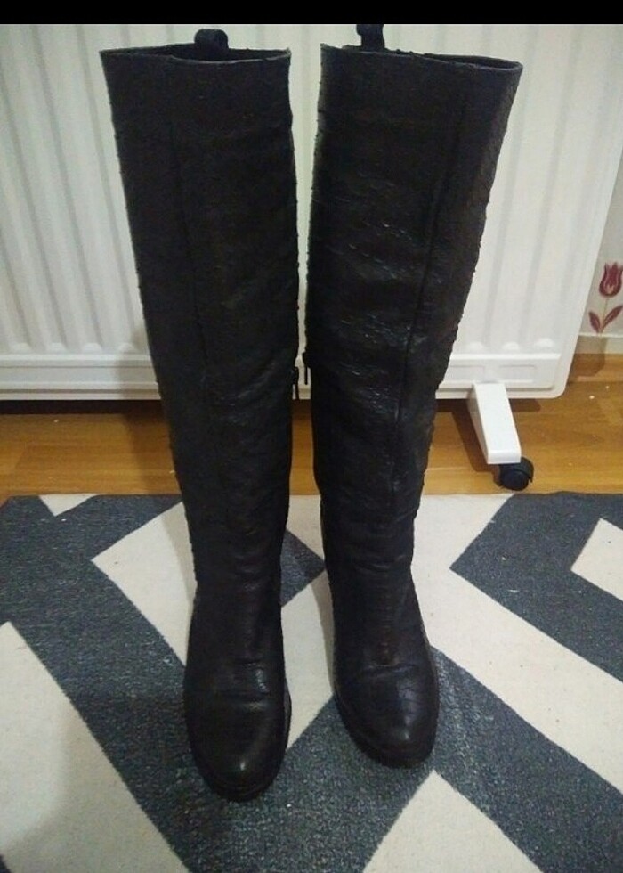 Topuklu 6 / 7 cm.rahat..cok az kullandım .hic sıkıntı yok.. sıfır gibi..deri siyah rengi