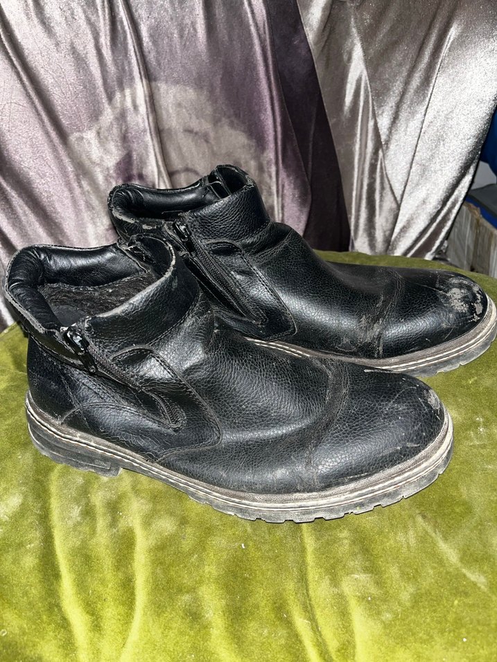 Siyah deri erkek botları, 2 yan tarafı fermuarlı detaylara sahip, günlük kullanım için uygun 42 numara