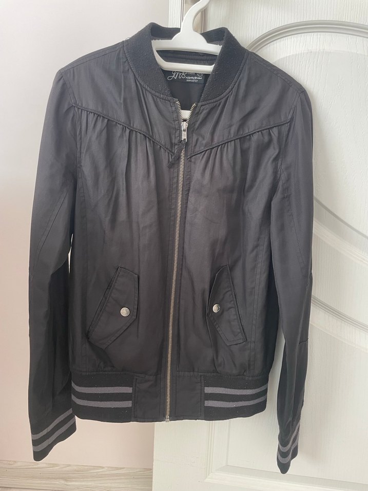 Fermuarlı, uzun kollu ve siyah sokak stili için uygun, vücuda oturan kadın ceket .Notlu yaka detayı bulunur.