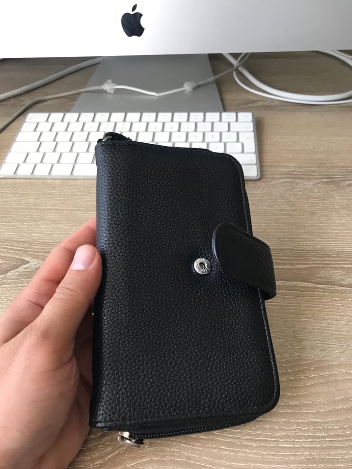 Fermuarlı bölmeli ve çıtçıtlı deri siyah kadın cüzdanı, günlük iş kullanımı için uygundur. Düz ve desensiz tasarımı genç gotik stiline uygundur.