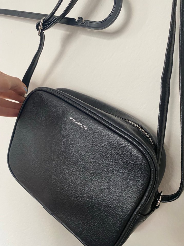 Kilitli fermuarlı, minimalist ve sade tasarımlı siyah deri çapraz çanta, günlük sokak stili için uygundur.