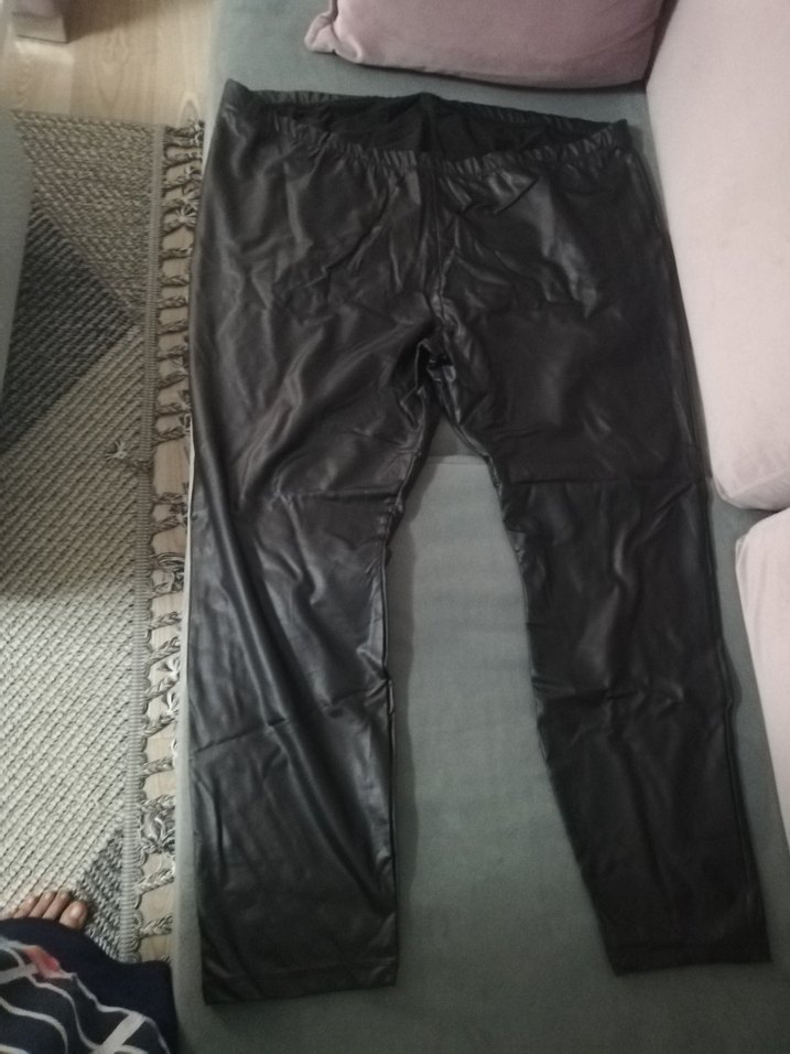 Siyah,, deri dar kesim tayt. Sokak tarzına uygun, dış mekan kullanımına elverişli. Büyük beden bel çevresi lastikli 121 cm. Boy106 cm.