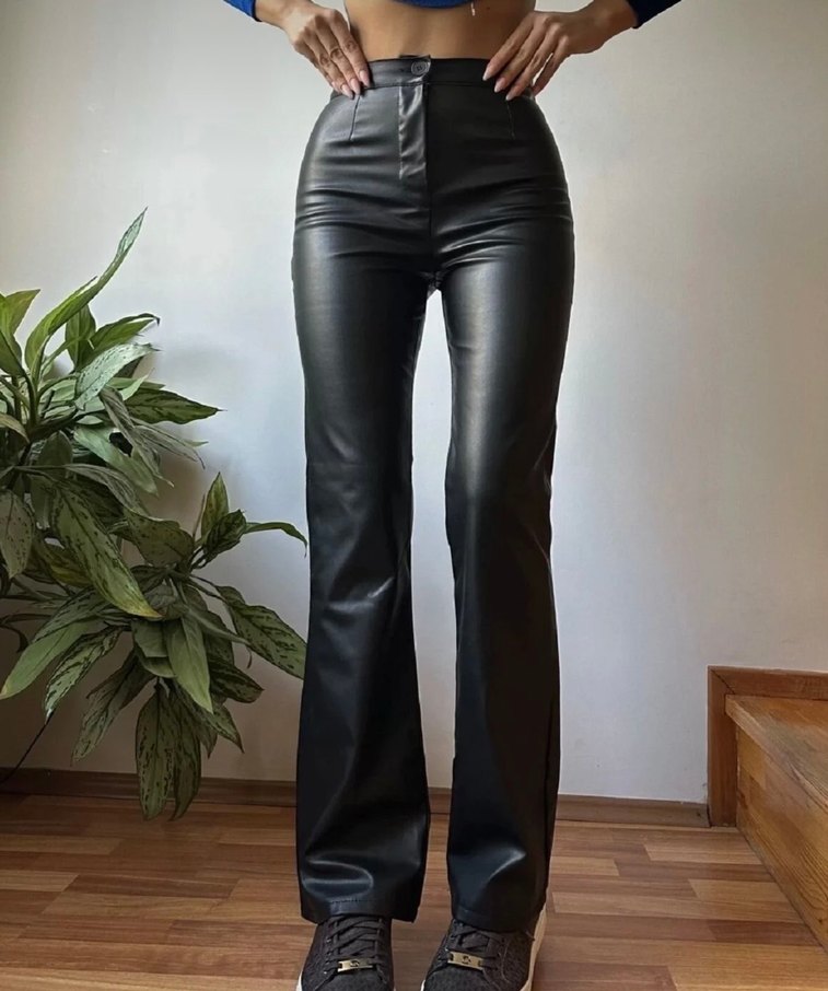 Hiç kullanmadım beli bol geldiği için terzide pens attırdım ondan sonrada giymedim 38 beden. Pens atılan yeri sökebilirseniz öylede kullanırsınız. Kemer detaylı, siyah deri kadın pantolon. Midi boy, dar kesim ve minimalist sokak stiliyle günlük kullanıma uygundur.