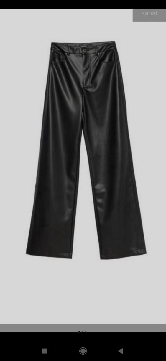 Siyah deri midi pantolon, regular fit ve kemerli bel tasarımıyla parlak, minimalist bir stil sunar, ofis kullanımı için uygundur. boyu kısa o yüzden satıyorum sadece denendi kullanılmadı