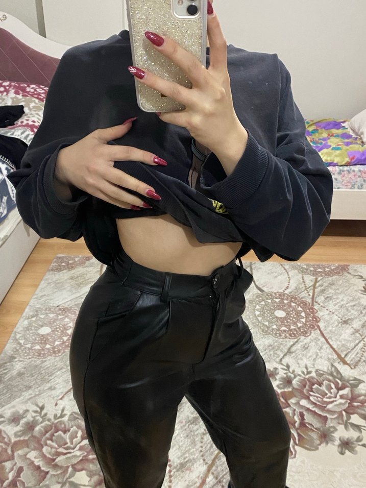 Kemerli, deri siyah uzun kadın pantolon, günlük sokak stiline uygun. Düz ve şık tasarımıyla trend görünüme sahiptir. Siyah deri pantolon xs s beden için uygun uygundur sadece bir kere kullandım yenidir defosu yoktur