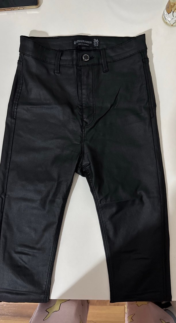 Deri siyah kadın pantolon, midi boy ve sade desensiz tasarımıyla rahat sokak stiline uygun. Günlük kullanım için zahmetsiz şıklık sunar.