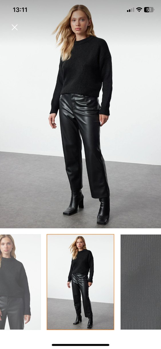 Deri Siyah Kadın Rahat Kesim Pantolon