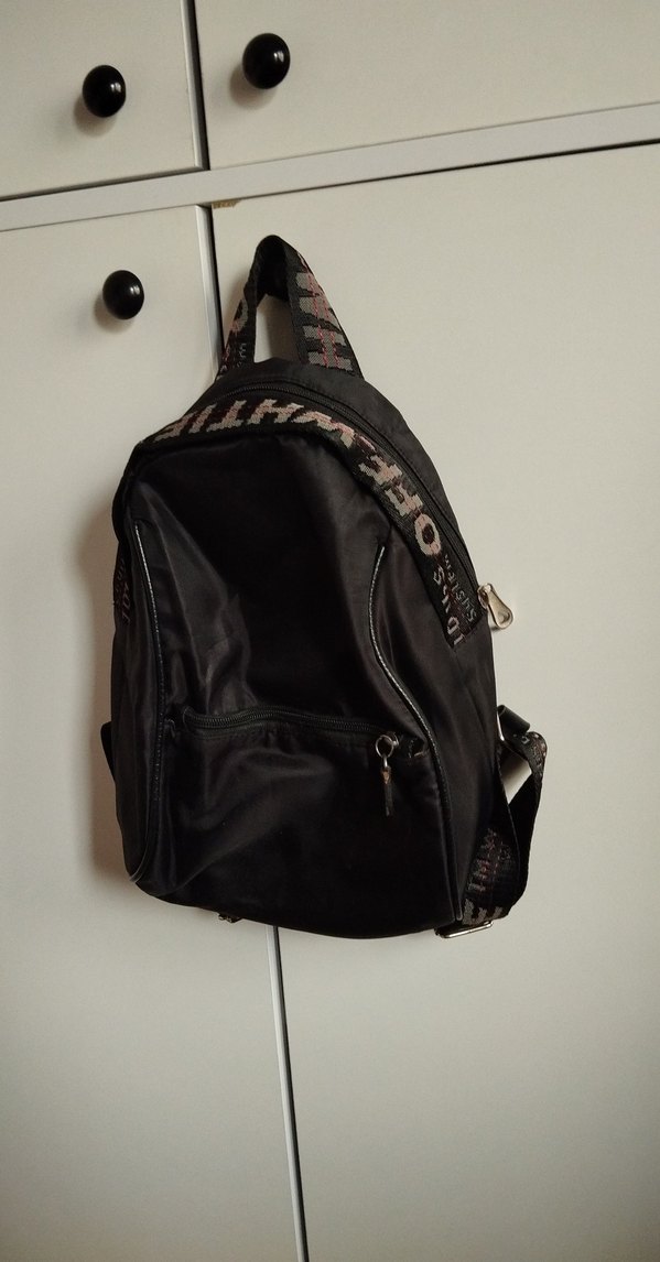 Baskılı detaylara sahip siyah deri kadın sırt çantası, fermuarlı cepler ve günlük kullanıma uygun streetwear tarzı ile. FERMUARLARİNİ DEGİSTİRDİK. AMERİKADAN GELDİ HEDİYE. KULLANİLDİ