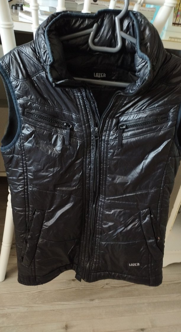 Bu siyah deri kolsuz yelek, yüksek yakası ve fermuarlı cepleriyle LOZER marka, sokak stili biker görünümünde. Trendy casual tarz için uygun.