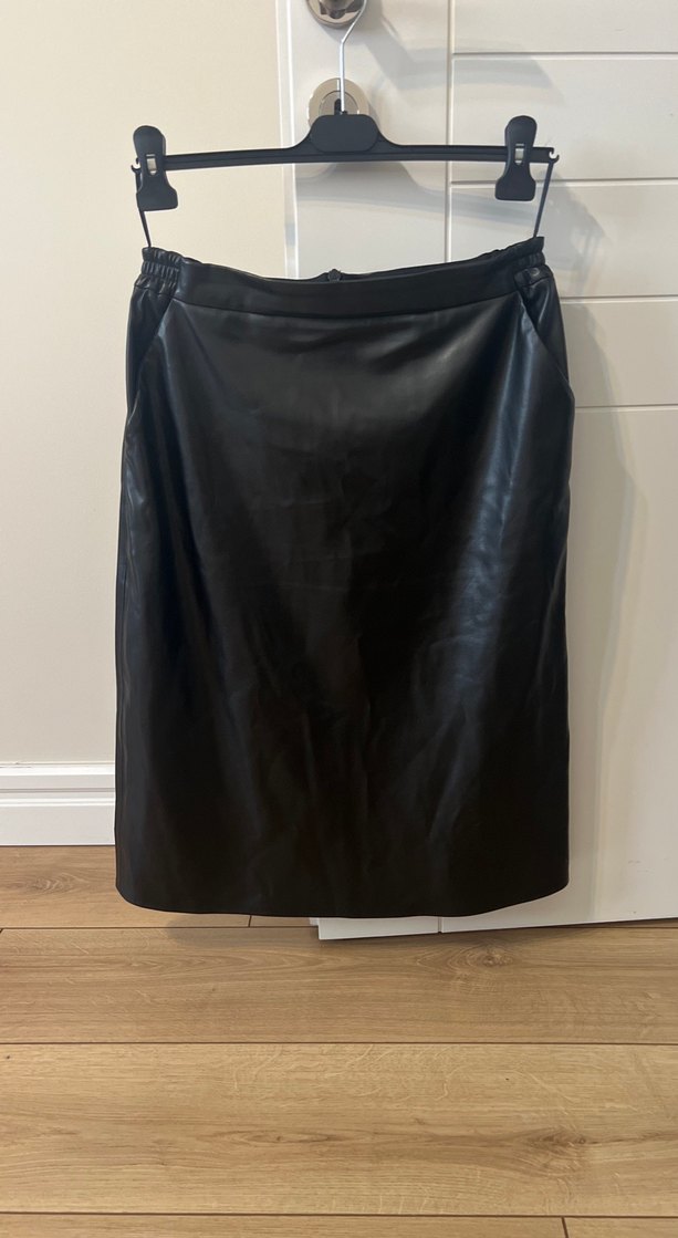 Deri siyah midi etek