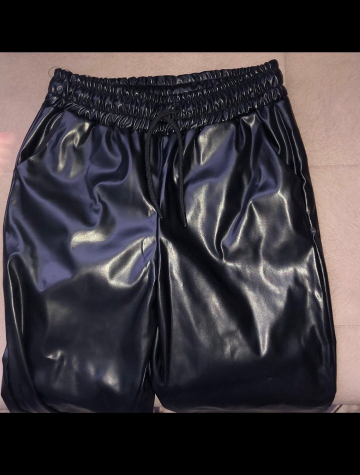 Deri Siyah Mini Kadın Pantolon