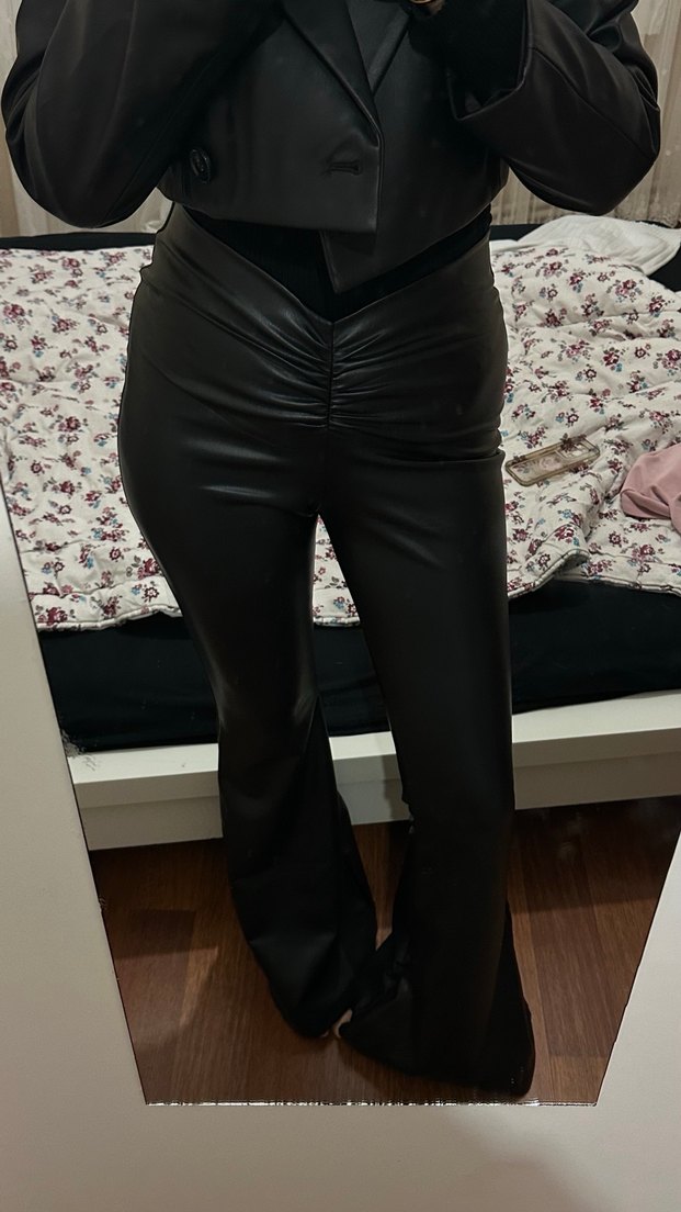 Siyah deri modelli tasarım pantolon . italyadan alındı sadece bir kere denendi. Temiz ve sorunsuzdur