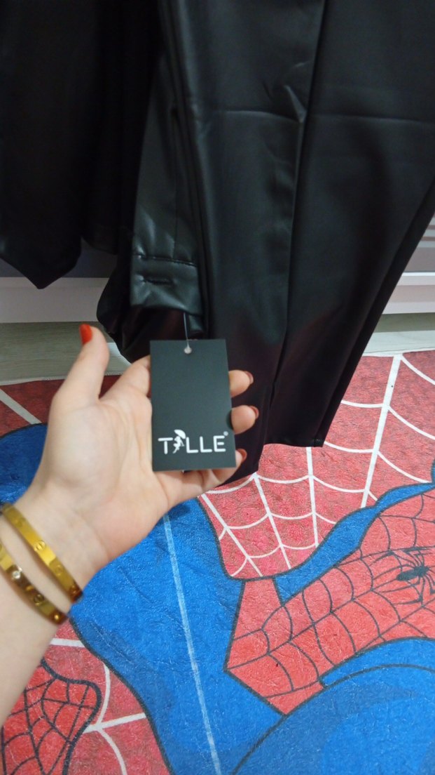 Püsküllü detaylı, deri, siyah renkli, baskılı, midi boy, dar kesim kadın pantolon. Sokak stili ve parti için uygun. Marka: TFLLE.