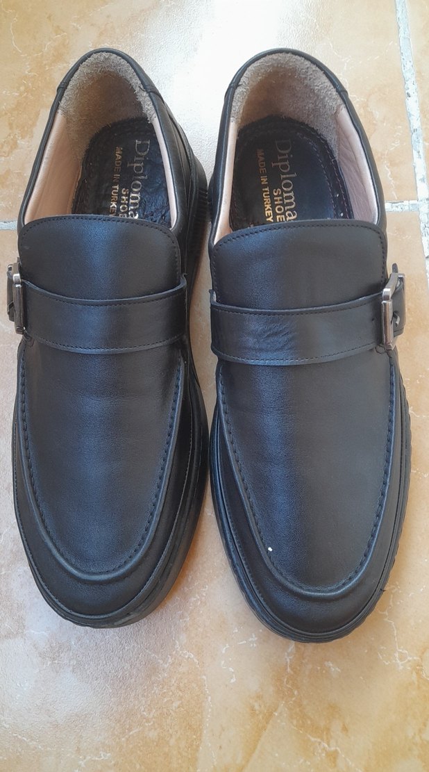 Ofis ve iş ortamları için tokalı, siyah deri klasik erkek ayakkabısı. Diploma markası, Türkiye yapımı.
