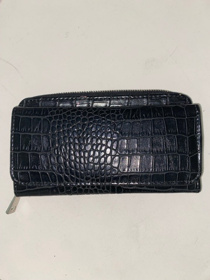 Deri Siyah Yılan Desenli Fermuarlı Kadın Cüzdan