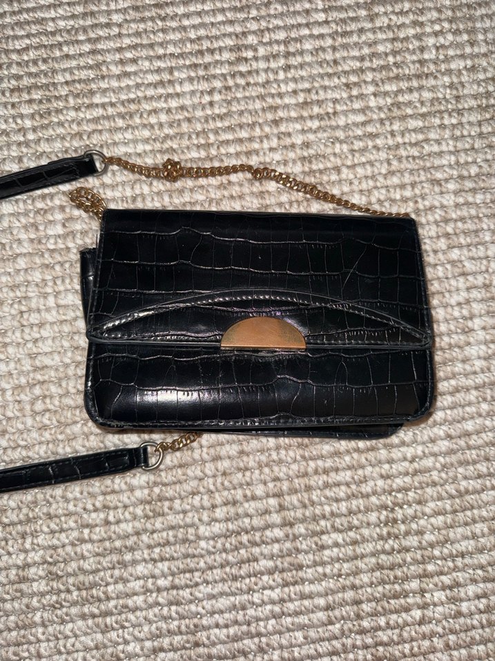 Deri Siyah Yılan Desenli Kadın Çanta