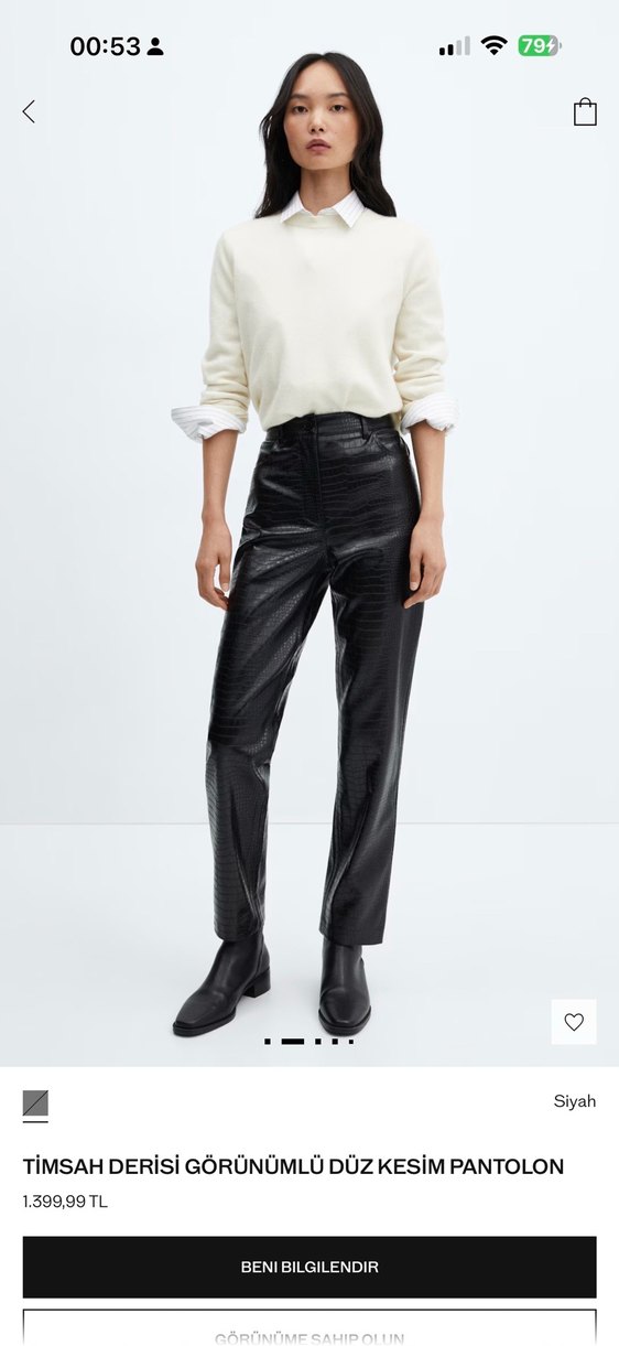 Siyah deri yılan desenli, kemerli ve normal boy midi kesim pantolon. Ofis ve günlük sokak stiline uygundur.