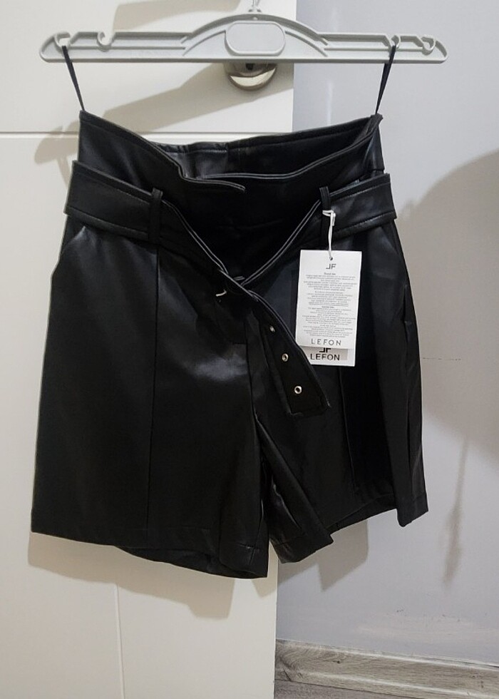 Siyah kemerli yüksek bel deri şort yeni etiketli 36,38,40,42 beden