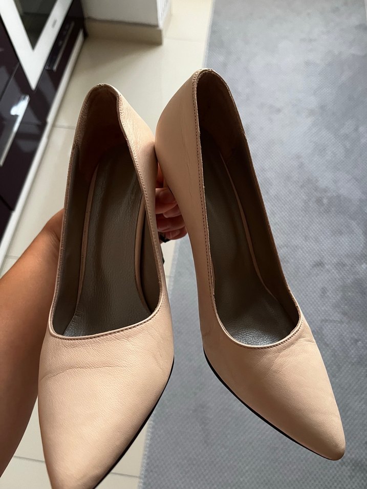 Deri stiletto Bej Minimalist Stiletto Topuklu Kadın Ayakkabı