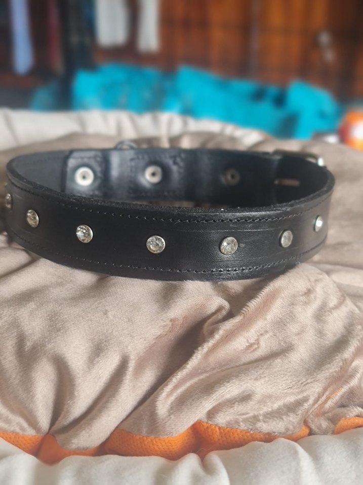 Tokalı ve zımbalı koyu siyah deri tasma, goth tarzını yansıtan rock punk havasında dayanıklı ve şık bir aksesuar.