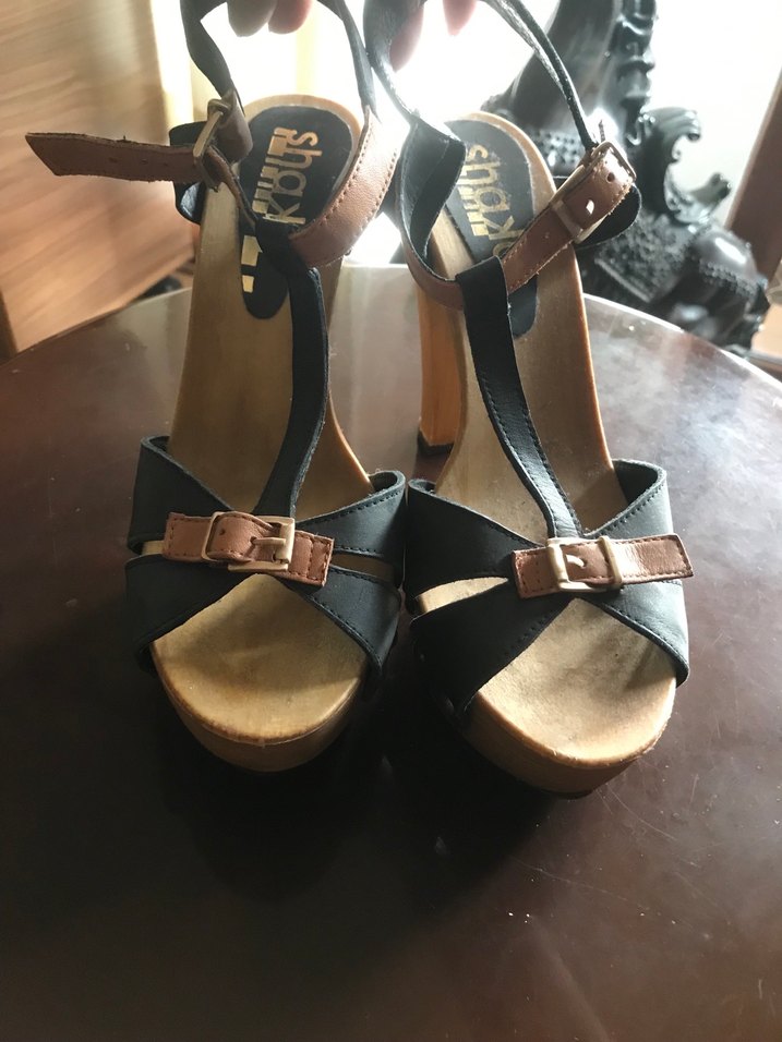 Deri Tokalı Platform Topuklu Kadın Sandalet