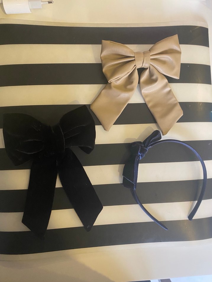 Koyu bej renkli deri ve siyah kadife fiyonk şeklinde saç aksesuarı, lacivert fiyonk taç tane fiyatıdır