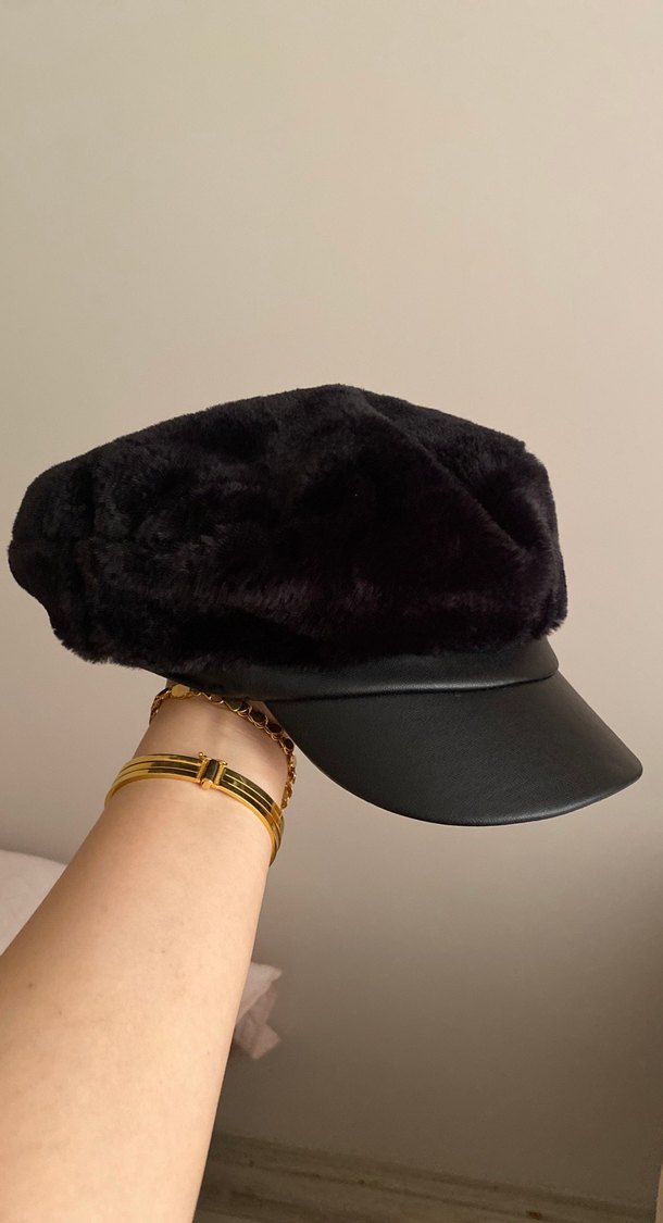 Deri ve Kürklü Siyah Kadın Şapka