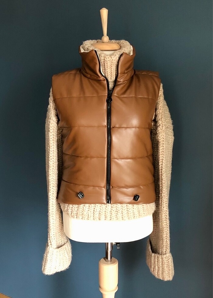 Belden lastikli, suni deri yelek. Son adet M beden✨