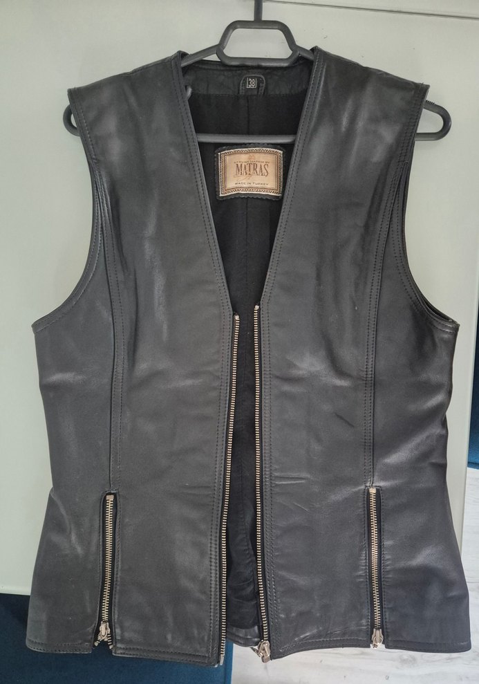 Matraş marka hakiki dana derisi muhteşem kondisyonda en ufak bor sorunu yok.nadir denk gelir.sirta birkaç patch ile super bir motorcu yeleği olur.38 bedendir. #deri#yelek#matraş#motor#harley#