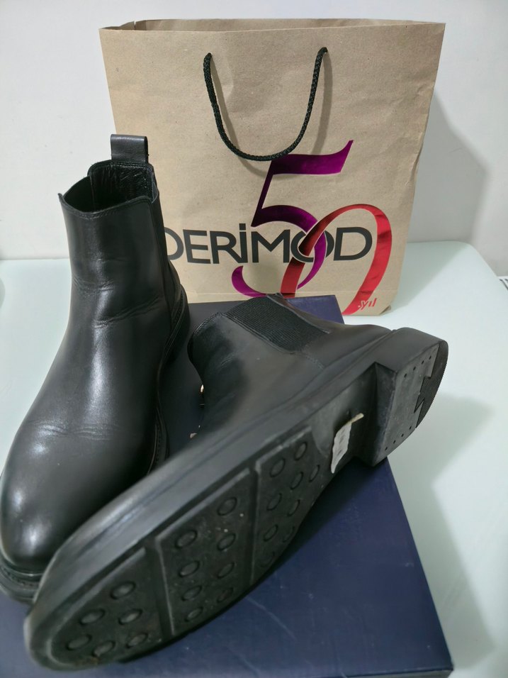 Hediye geldi kutusu faturası herşeyi mevcut..orijinal Derimod mağazasından alınma 44 numara.. botun altındaki etiket bile duruyor...sadece 3 hafta kullanıldı