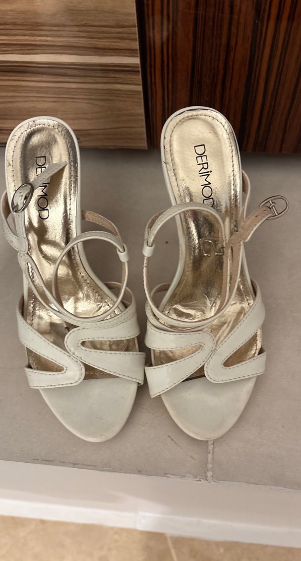 DERİMOD Beyaz Dolgu Topuklu Kadın Abiye Ayakkabı