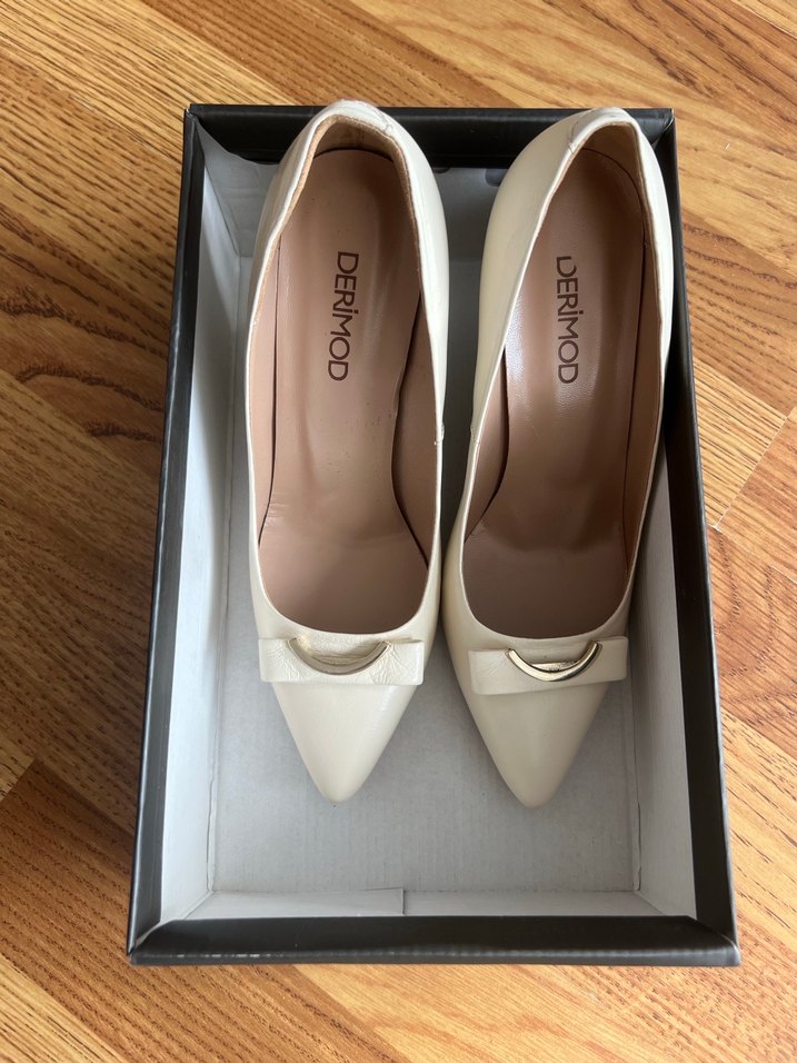 DERİMOD Beyaz Tokalı Kadın Topuklu Ayakkabj