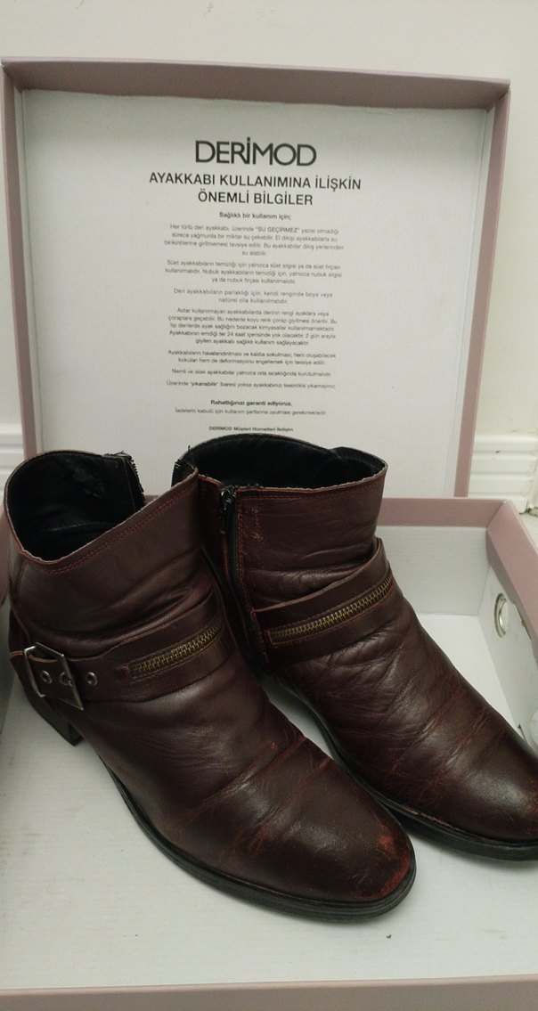 DERIMOD markasına ait bordo deri kadın botları, tokalı ve blok topuklu tasarımıyla günlük kullanım için uygundur.