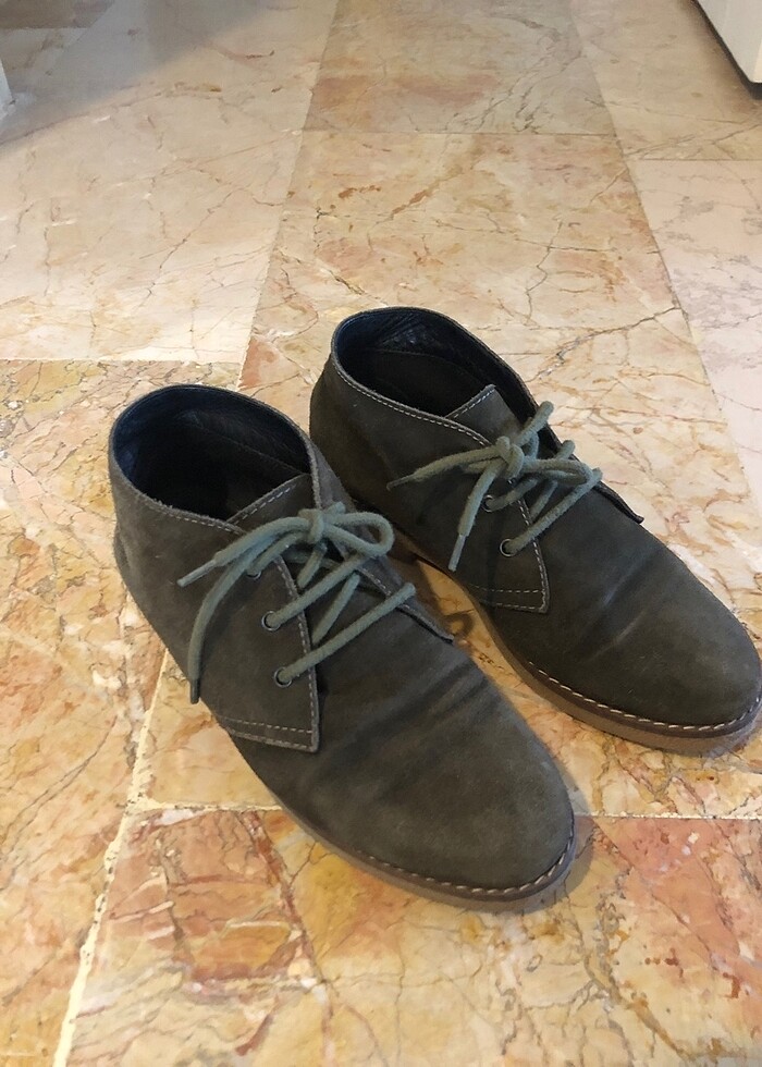 Az kullanılmış haki renk süet bot