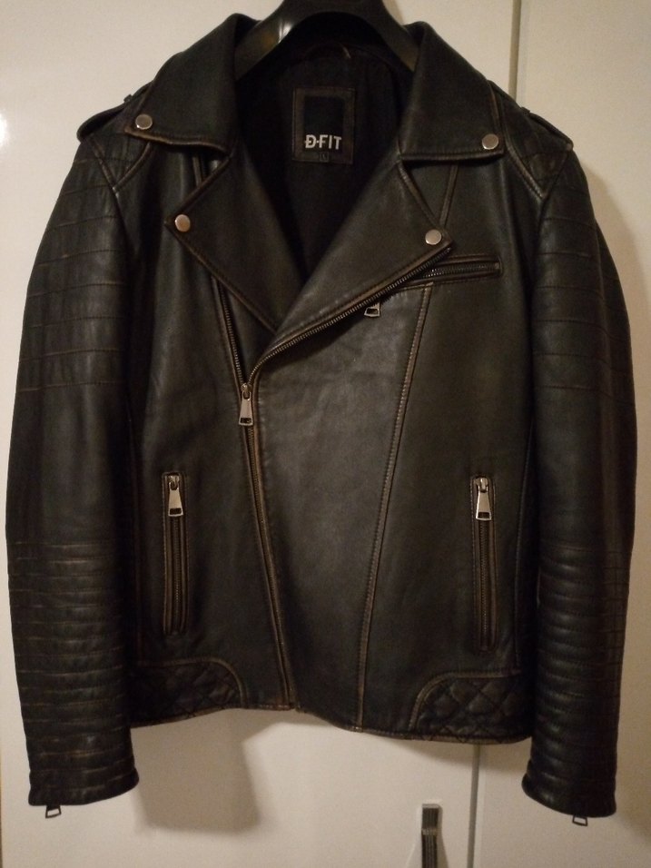 Hatasız Kusursuz D-FIT Derimod marka siyah deri biker ceket, bel detaylı ve çıtçıtlı, strappy kollu, normal boyda, rock punk tarzını yansıtan fit kesimdir. L beden. Kol Altlarından Eni: 54 cm. Kol boyu: 61cm
